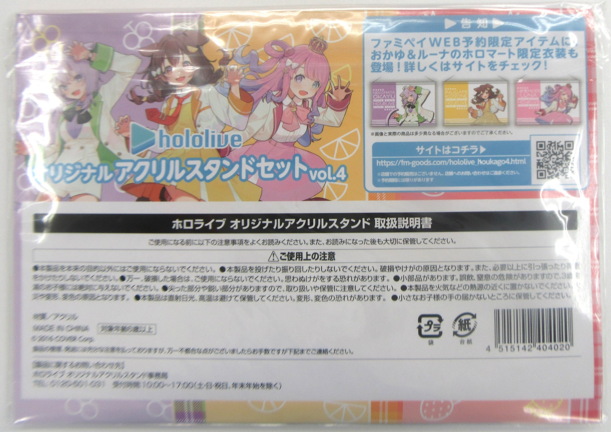 FamilyMart hololive Original Acrylic Stand Set vol.4 Nekomata Okayu Inugami Korone Himemori Luna FamilyMart Limited